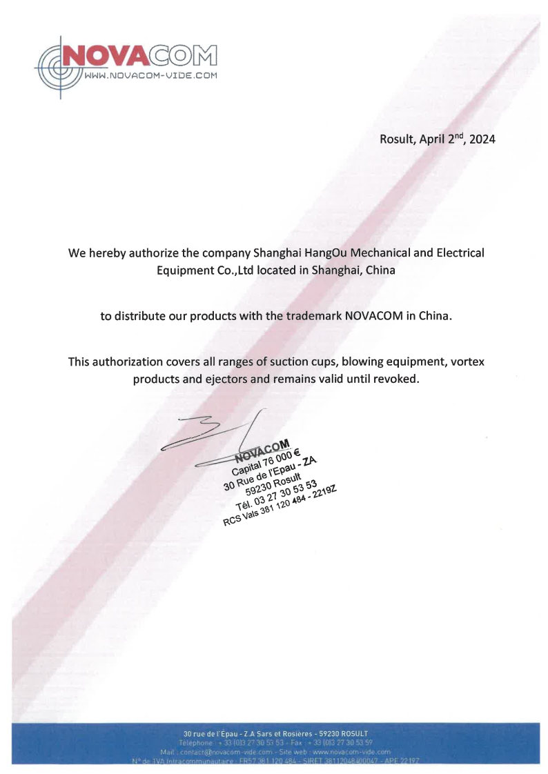 2024年法國NOVACOM工廠授權(quán)上海航歐中國區(qū)代理