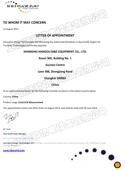 2013年TRUMETER工廠上海航歐中國區銷售
